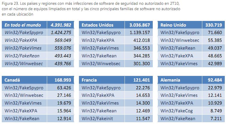 En relación a los falsos antivirus, Estados Unidos es el país más afectado con más de 3 millones de ejemplares detectados en el segundo trimestre del año: